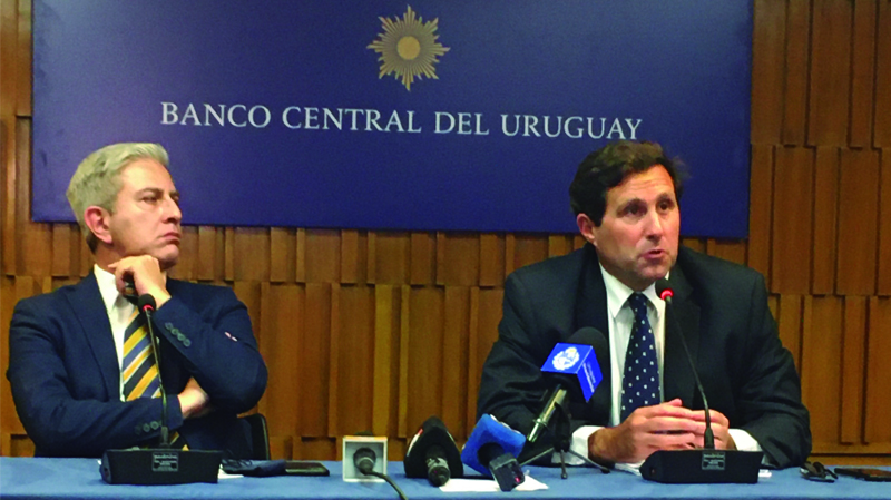 La conferencia estuvo encabezada por Diego Labat, presidente del Directorio del BCU, acompañado de Washington Ribeiro, vicepresidente del mismo organismo.
