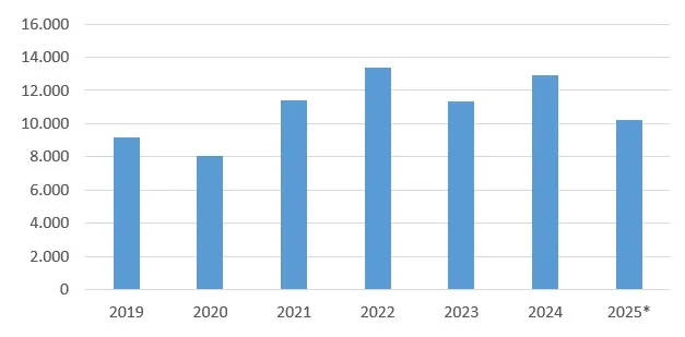 Según el informe de Comercio Exterior elaborado por Uruguay XXI, las ventas al exterior totalizaron US$ 10.245 millones en el acumulado a setiembre de 2025 —incluyendo las operaciones de zonas francas—, lo que representó un aumento de 5% respecto al mismo período del año anterior.