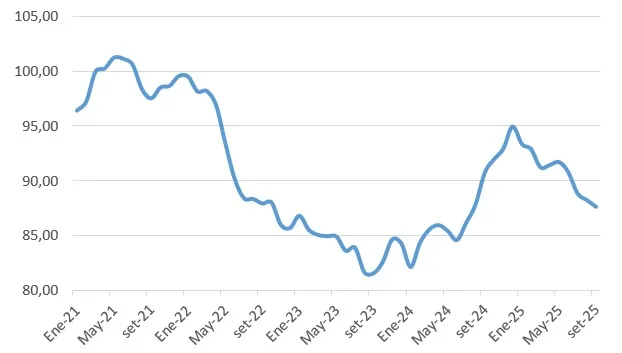 En setiembre de 2025, el TCR global disminuyó 0,7% respecto a agosto, y en la comparación interanual mostró una baja de 3,4%.