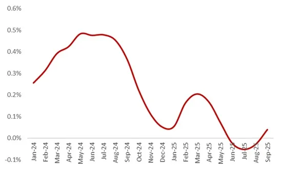 El comportamiento del nivel tendencial de la actividad económica correspondiente a los primeros nueve meses del año se ubica 2,6% por encima de la tendencia de esos mismos meses de 2024. Los datos disponibles evidencian que tanto la desaceleración del crecimiento como el incipiente cambio de signo, habrían tenido lugar durante el tercer trimestre.