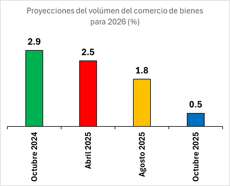 Si bien las proyecciones de crecimiento del comercio para el año 2025 fueron ajustadas a la suba en cada informe periódico, sucesivamente dichos reportes han ido revisando a la baja el crecimiento del comercio para 2026.
