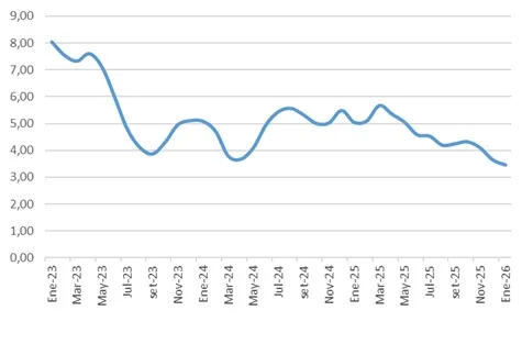 Según el Instituto Nacional de Estadística (INE), el Índice de Precios del Consumo (IPC) aumentó 0,9% en enero respecto al mes anterior. Con este registro, la inflación interanual se ubicó en 3,46%, mostrando una leve desaceleración frente a diciembre.