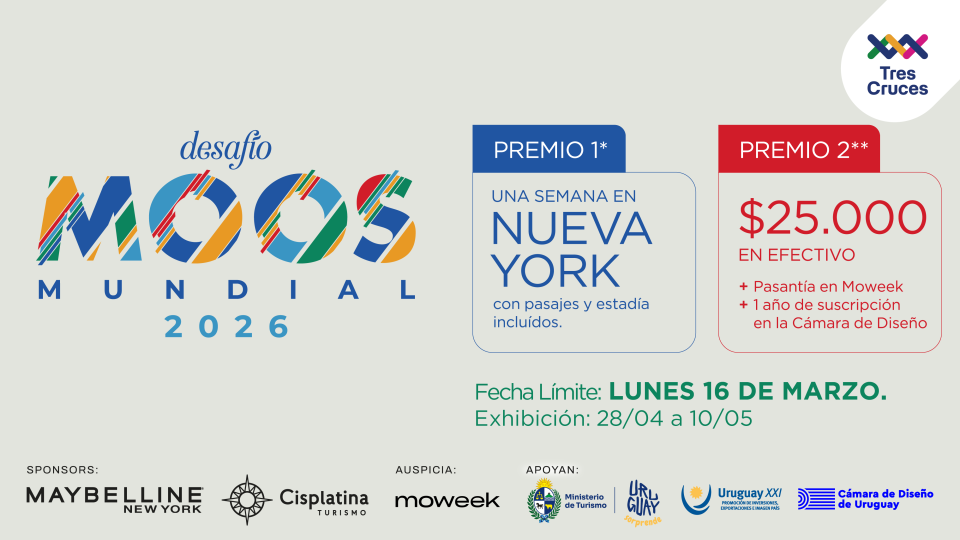 En el año del Mundial de Fútbol, el concurso Desafío MOOS MUNDIAL de Tres Cruces convoca a jóvenes creativos de todo el país a desarrollar una producción de moda y contenido digital. Con el auspicio de Maybelline y Cisplatina, y el apoyo de Moweek, el certamen busca descubrir y acompañar nuevos talentos, representando un departamento uruguayo y reinterpretando la identidad de un país mundialista.