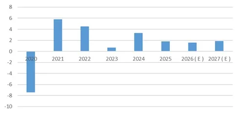 Según la Encuesta de Expectativas que publica el BCU, la mediana de los analistas prevé que la economía uruguaya continúe expandiéndose, aunque a un ritmo acotado. En particular, se estima un crecimiento del PIB de 1,6% en 2026 y de 1,85% en 2027.