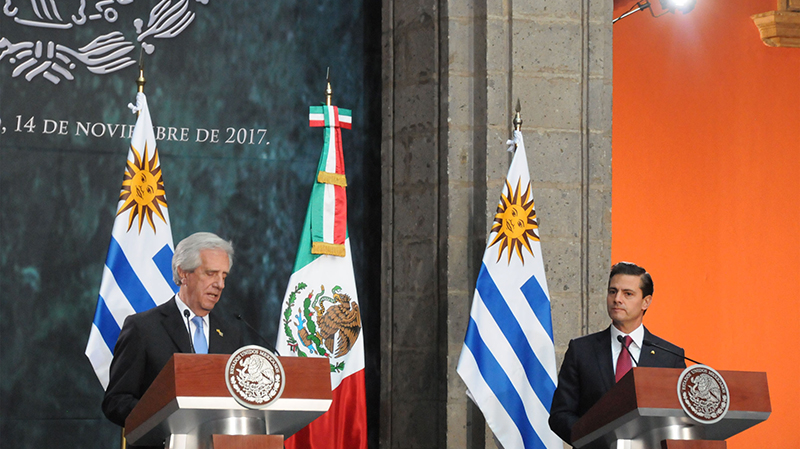 De acuerdo a lo informado por la Secretaría de Prensa de la Presidencia de la República, durante la visita oficial a México el mandatario uruguayo destacó la “fuerte estabilidad política y social, además de una legislación beneficiosa para los inversores extranjeros”, en un mensaje directo a los empresarios mexicanos.