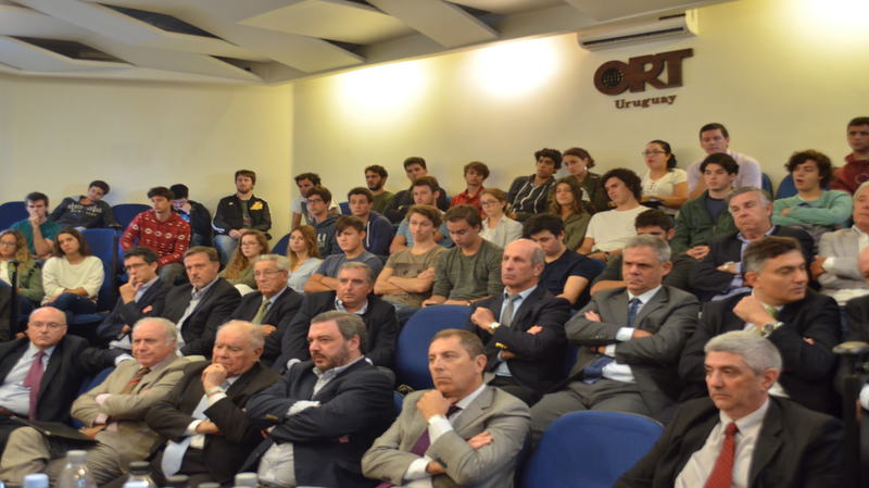 En la mañana del jueves, el salón principal de la ORT se vio colmada por expertos y jóvenes que atendieron a la presentación del texto que narra la historia de la institución bancaria.