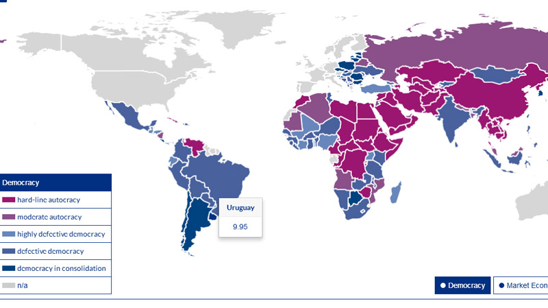 El índice de transformación política mide si la democracia funciona. En esto, Uruguay logró un puntaje de 9.95 sobre 10, aunque en transformación económica, se encuentra décimo. Entre el período comprendido entre 2016 –cuando se realizó el último análisis- y 2018, nuestro país cambió muy poco. Aunque, por otro lado, se develan algunas dificultades.