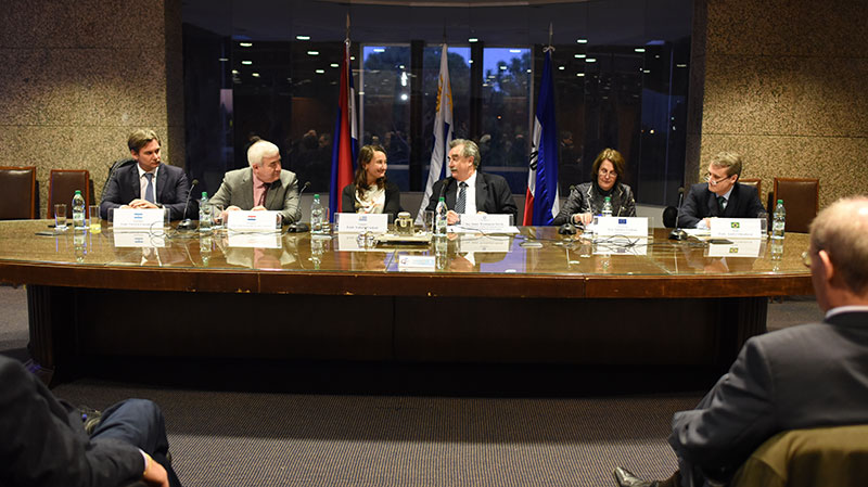El pasado miércoles 6 de junio, en el marco de una nueva Ronda de Negociaciones entre el MERCOSUR y la Unión Europea, la Cámara de Industrias del Uruguay organizó un encuentro entre los representantes del sector privado nacional y regional, con los jefes de la delegación oficial de cada una de las partes.El evento contó con la presencia de la Sra. Sandra Gallina, jefe negociador de la Unión Europea, la Emb. Valeria Csukasi, jefe negociador de Uruguay, Emb. Victorio Carpintieri, jefe negociador de Argentina, Min. André Odenbreit, jefe negociador de Brasil, Emb. Luis Fernando Avalos Giménez, jefe negociador de Paraguay y como moderador, el Ing. Quím. Washington Durán, presidente de la Comisión de Comercio Exterior de la CIU. En lo que respecta al sector privado, concurrieron diversas organizaciones representantes de los sectores industriales más importantes de nuestro país, así como empresas socias y gremiales, además de representantes sectoriales del resto de los Estados Parte del MERCOSUR. Tal espacio de intercambio entre el sector oficial y empresarial, significó una importante oportunidad para que el sector industrial nacional, tome contacto directo con el equipo negociador en su conjunto, pudiendo transmitir y haciendo conocer, de manera directa, sus inquietudes, necesidades y puntos de vista respecto al proceso de negociación en curso para alcanzar un acuerdo de asociación interregional que conlleve condiciones de comercio más favorables entre las partes, como ser preferencias arancelarias, eliminación de barreras técnicas al comercio, etc. Los cinco jefes de delegación, coincidieron en mostrarse optimistas y con buenas expectativas de que el cierre de este acuerdo se encuentra muy próximo. Por su parte, la negociadora uruguaya, señaló que se han logrado cerrar diversos capítulos que hace tiempo se encontraban bloqueados. Sin embargo, destacó que hay temas críticos y de alta relevancia sobre los cuales aún no se ha llegado a un acuerdo entre las partes, entre otros, el del sector automotriz, la carne, el arroz, el etanol, las indicaciones geográficas, etc. Por último, se realizó una ronda de preguntas por parte del sector privado que fueron oportunamente respondidas por los negociadores de ambos bloques.