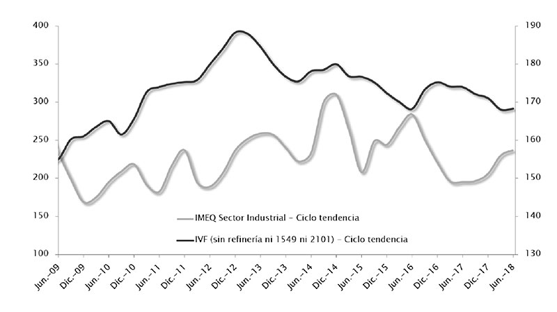 Cabe mencionar que 2017 fue un año en donde la inversión en la industria estuvo muy deprimida, con lo que el incremento del segundo trimestre de 2018 en términos interanuales, en buena parte se explica por esta razón Si por el contrario se compara con 2016, la inversión en maquinaria y equipos en la industria resulta 21% menor.