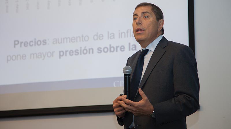 El segundo gran problema es el empleo. Desde 2014 se perdieron unos 50 mil puestos de trabajo y la tasa de empleo se ubica en niveles de 2007. Paralelamente hubo una reducción de la tasa de actividad –menos personas buscando trabajo- lo que ha permitido que el desempleo no haya aumentado de forma significativa. Un desafío ante esta coyuntura son los Consejos de Salarios, que por primera vez se desarrollan en un ciclo recesivo en el que demasiada rigidez podría afectar los niveles de empleo. Agregó que si bien la inflación permanece en torno a la actual “zona de confort”, el aumento registrado en los últimos meses “no ayuda” a las negociaciones.