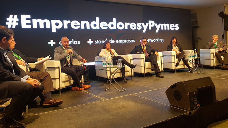 Entre medio de stands de instituciones y empresas, tuvo lugar la charla inaugural de la jornada. A cargo de autoridades públicas y privadas, se discutió sobre “Las pymes y el acuerdo comercial Unión Europea (UE)-Mercosur: claves para estar preparados”.