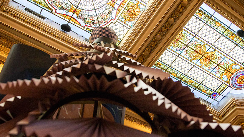 Martínez resaltó la importancia que tuvo realizar la obra dentro del histórico edificio, de manera que día a día las personas pudieran ser parte del proceso de creación. Al artista también se le ocurrió la idea de hacerlo a una escala bastante grande, de manera que combine con los grandes espacios de Sofitel y, además, que genere impacto en quien lo mire. La obra en forma de árbol navideño tiene 4,30 metros de alto y un diámetro de 2,5 metros.