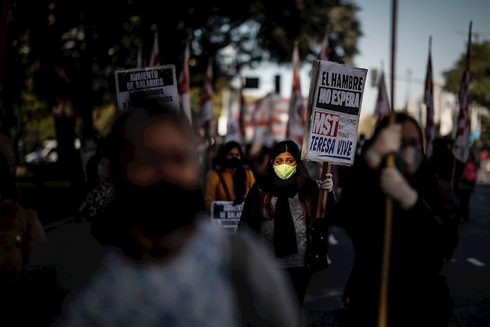 "Nuestro reclamo es por los alimentos que están postergados a los merenderos, a los comedores, este Gobierno que dice que está abasteciendo y no es así, y la situación se profundiza en la cuarentena con esta pandemia. La pandemia también refleja el crecimiento del hambre", declaró a Efe Ricardo Antuñez, referente del Movimiento Sin Trabajo Teresa Vive.