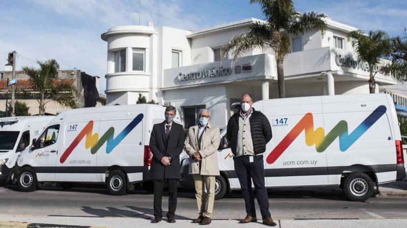 UCM incorporó siete nuevas ambulancias de la generación 315 de Mercedes Benz Sprinter adquiridas recientemente al representante de la marca en Uruguay, Autolider. La entrega, que representa un hito en la relación entre las instituciones, se realizó en el Centro Médico UCM Falck Carrasco con autoridades de ambas empresas.Pedro Fiorito, quien recientemente asumió la gerencia general de UCM, y Nicolás Rippe, gerente de Nuevos Proyectos y Responsable de Logística de UCM, recibieron los flamantes móviles que fueron entregados por Fernando Auersperg, gerente Comercial de Autolider.Estas unidades aportan nuevos elementos de seguridad al paciente y a los médicos, enfermeros y choferes profesionales de la institución. Las medidas de seguridad de las unidades forman parte de su equipamiento de serie conocido como: Programa ESP adaptativo generación 9, que brinda asistente de frenado autónomo de emergencia, asistente de viento lateral, asistente de fatiga y distracción del conductor, ayuda de arranque en pendientes, distribución electrónica de fuerza de frenado, airbag en su dos plazas, luz de freno adaptativa, avisador de cinturón de seguridad no abrochado y ABS, etc.Además, para UCM se les incorporó cámara a bordo con permitiendo brindar información en caso de un accidente o agresión al equipo asistencial, barrales verdes para mayor visualización ya que se trata de un equipo asistencial y los logotipos de UCM Falck refractivos como el de ‘ambulancia’. También, se le colocaron sillas de acero inoxidable para una mejor limpieza y durabilidad y luz en la parte del escalón de la puerta corrediza para una mejor visualización a la hora de bajar y subir del móvil.