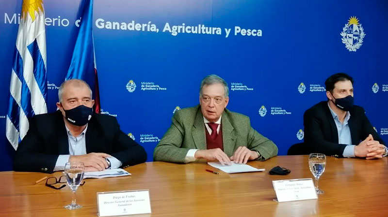 En conferencia de prensa consignada por la secretaría de comunicación del Ministerio, el ministro de Ganadería, Agricultura y Pesca, Fernando Mattos enfatizó que las enfermedades HLB y Peste Porcina Africana pueden ingresar a través de los humanos de manera involuntaria. “Si se ingresan plantas de forma ilegal o productos de origen suino o se visitaron establecimientos afectados se puede introducir y diseminar estas enfermedades incluso a través de la ropa y afectar gravemente las cadenas productivas, por ende a muchos productores, empleos e industrias”. El mandatario en compañía del Director de Servicios Ganaderos, Diego De Freitas y el Director de Servicios Agrícolas, Leonardo Olivera, informaron recomendaciones ante la amenaza de un eventual ingreso al país de dos enfermedades que pueden afectar gravemente la producción nacional. Por un lado, las bacterias que causan el HLB y que ataca a los cítricos y por otro la Peste Porcina Africana, que ataca a los suinos.Según informó el MGAP en su sitio web, se considera que Uruguay tiene alto riesgo fitosanitario por detecciones de HLB en Corrientes y Entre Ríos. Por su parte, la PPA ingresa luego de 40 años, nuevamente en 2021 a nuestro continente, por República Dominicana, actualmente con dos focos declarados a la OIE, uno en Santo Domingo y otro cerca de la frontera con Haití.Durante la conferencia de prensa, estuvieron presentes vía remota, además, el Gerente del Sistema Inteligente de Bioseguridad Agroalimentaria en Frontera (SIBAF), Andrés Salvo y el Encargado de Sanidad Porcina del Programa Sanitario de los SSGG, Gustavo Castro.Acompañaron la instancia, el vicepresidente de la Unión de Productores y Exportadores Frutihortícolas del Uruguay (Upefruy), Alejandro Buratovich (audio al pie) y el gerente de Upefruy Heraldo Méndez.Durante su exposición, el Director de los Servicios Agrícolas, explicó que el HLB es la enfermedad más destructiva de los cítricos, causada por tres bacterias y hasta el momento no tiene cura. “Habitan el floema y se mueven por toda la planta. Todos los cítricos son susceptibles. La Murraya o mirto también puede hospedar la bacteria y el vector”.Agregó además, que su situación en Uruguay, se define como plaga cuarentenaria ausente, con presencia del vector Diaphorina citri en la zona norte del país.Olivera recordó que el citrícola es el principal rubro frutícola de exportación del país, y que el destino de la producción de fruta fresca de alta calidad para exportación es de aproximadamente el 50%. Por otra parte, emplea a 16.000 trabajadores entre permanentes y zafrales.La enfermedad causa la muerte de plantas, la disminución de la producción, la caída prematura de frutos y el aumento de los costos de producción y pérdida de valor de la fruta.La principal via de dispersión es la acción del hombre a través del transporte de plantas de cítricos infectadas, transporte de otros hospedantes infectados o transporte del vector infectado en materiales vegetales.Medidas adoptadas por la DGSAEn función de la detección y avance de la enfermedad en la región, la Dirección Nacional de Servicios Agrícolas (DGSA) diseñó una estrategia Nacional de prevención basada en: Programa Nacional de Vigilancia para HLB, Programa de Vigilancia para Diaphorina citri, Medidas fitosanitarias, Comité Técnico asesor, Investigación y desarrollo, Capacitación, Divulgación y Plan de Contingencia, así como el Programa de producción y certificación de materiales de propagación de cítricos. Posteriormente, el Director de los Servicios Ganaderos, expresó que la Peste Porcina Africana (PPA) es una enfermedad viral altamente contagiosa de los cerdos. El virus, por lo general, sólo se encuentra en África, pero han tenido lugar brotes en Europa, América del Sur y el Caribe. La enfermedad tiene graves consecuencias en la salud del animal y en la economía, incluyendo restricciones de exportación. La limitación de movimientos, despoblación y medidas de control estricto serían las necesarias para erradicar la enfermedad.La peste porcina africana con frecuencia ingresa a la piara mediante su alimento con sobras de comida sin cocción o faltas de cocción (basura) que contenga productos derivados de cerdo contaminados (por vía oral). Una vez infectado, el virus se propaga fácilmente entre los cerdos por contacto directo o indirectamente por contacto con objetos contaminados (fomites), tales como vehículos, equipos, calzado o ropa. Algunas especies de garrapatas (vectores) pueden transmitir el virus. Otros insectos o moscas chupadoras de sangre también pueden transmitir el virus entre los cerdos. La trasmisión por aerosol es limitada.Los humanos no son susceptibles al virus de la peste porcina africana. No existe vacuna, por lo que la medida para combatirla es el sacrificio sanitario. El virus es altamente resistente en el ambiente y en los productos de origen porcino contaminados. Los comportamientos imprudentes pueden diseminar la enfermedad.Medidas adoptadas por la DGSGPor su parte la Dirección General de Servicios Ganaderos, como forma de extremar los cuidados, se realiza la vigilancia en los establecimientos considerados de riesgo cercanos a los puertos y aeropuertos, cercanos a sitios de disposición final de residuos y a los establecimientos con escasa bioseguridad.Por tal motivo, se extremaron las medidas de vigilancia y control en los sitios de disposición final de residuos para evitar el ingreso de animales.Las autoridades exhortaron a los productores a reforzar medidas de bioseguridad en los establecimientos y aplicar los cuidados necesarios como no alimentar a los animales con residuos, evitar que los animales escapen e ingresen a basurales. Asimismo, evitar visitas al establecimiento de gente que viene de países con PPA y reforzar las medidas para evitar el contacto con jabalíes, así como no trasportar cerdos ni productos de origen porcino.
