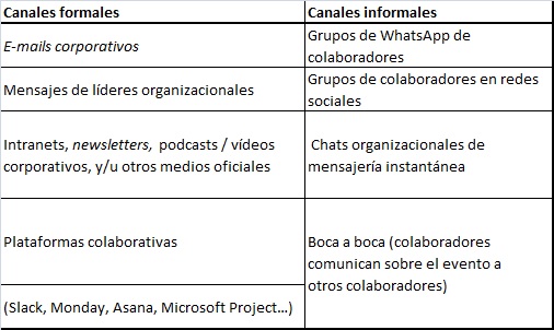 En el siguiente cuadro te mostramos algunos ejemplos de canales formales e informales.