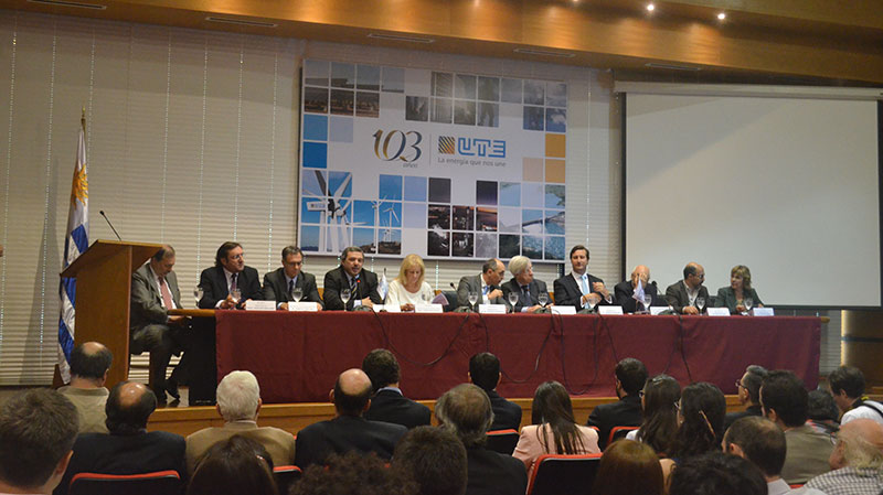 El ministro de Economía, Danilo Astori; la ministra de Industria, Carolina Cosse; el presidente de UTE, Gonzalo Casaravilla; el presidente del Banco Central, Mario Bergara y el CEO de SURA, Gonzalo Falcone, fueron algunas de las autoridades presentes en el evento.