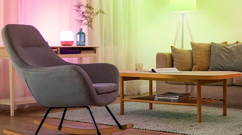 Este sistema de iluminación inteligente crea nuevas posibilidades para experimentar el poder de la luz en casa, sin la necesidad de instalar complejos sistemas que requieran cables o el recambio de toda la iluminación. A través de una aplicación que se puede descargar desde cualquier dispositivo móvil se logra regular la intensidad, controlar el encendido y apagado de manera remota y jugar con los más de 16 millones de colores para adaptar el hogar de acuerdo con cada necesidad.