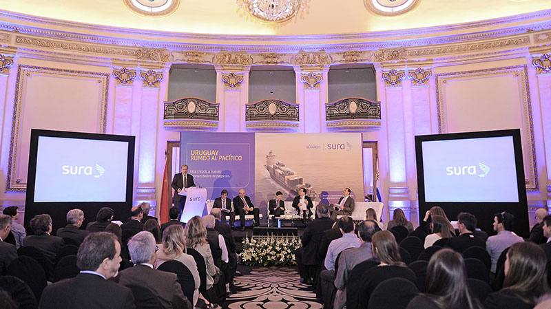 Seguros Sura realizó su foro anual de comercio exterior. En esta oportunidad, la temática fue "Uruguay de cara al Pacífico", y convocó a disertantes de diversos sectores a debatir e intercambiar sobre las nuevas oportunidades de negocio con China. ¿Uruguay necesita un TLC con la potencia asiática? ¿Se debe negociar desde el Mercosur? fueron algunos de los principales puntos de debate. Previo a las mesas de discusión, Juan Artagaveytia, director comercial de Seguros Sura, dio unas palabras de bienvenida, acompañadas de un breve balance de lo que fue el 2016 para la compañía aseguradora. Un año crucial, que marcó un hito en su historia por el cambio de marca de RSA a Sura Seguros, tras la adquisición de la compañía por parte de Suramericana, filial del grupo Sura, un holding de negocios en varios rubros.