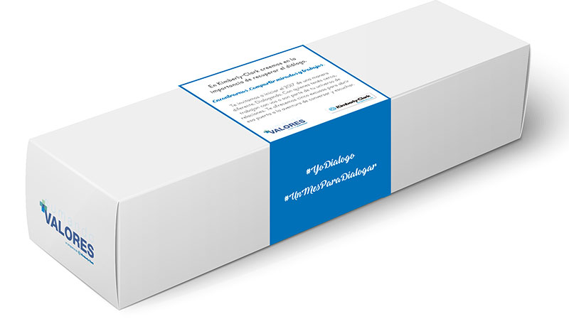 Kimberly-Clark desarrolló un Kit del diálogo para incentivar este valor entre su red de relaciones. El kit contiene cinco alimentos con cinco consignas para compartir con distintas personas del entorno.En el marco de su iniciativa corporativa “Sumando Valores”, Kimberly-Clark desarrolló un Kit del diálogo con iniciativas para comenzar una conversación: una caja que contiene excusas (macarrons, alfajores, bombones y tés, entre otros) ideales para compartir de a dos, con cinco consignas cada una, una por día, para entablar conversaciones con quienes nos rodean y aquellos con quienes, tal vez, no se tiene la oportunidad de hablar tan frecuentemente.