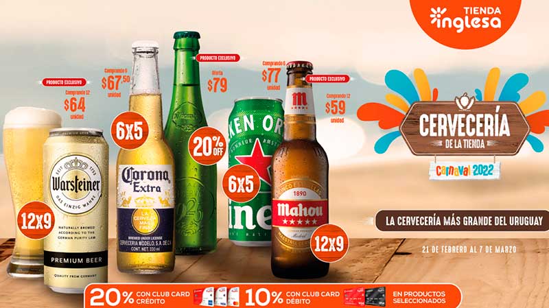 Las ofertas abarcan a todas las categorías: IPA, negras, sin alcohol, artesanales, del mundo y nacionales. Una de las marcas exclusivas es Mahou, la cerveza española cinco estrellas más premiada del mundo, lanzada en Uruguay en 2021 de la mano de Tienda Inglesa, junto con Alhambra, ambas del grupo San Miguel. Los clientes también podrán encontrar la cerveza alemana Warsteiner.