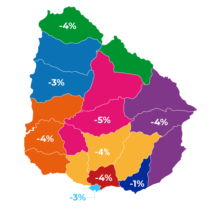 Las variaciones en las distintas zonas del país muestran una caída generalizada en lo que va del año, con valores negativos en todas las regiones.