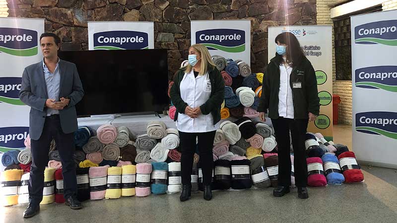 La donación de Conaprole consistió en la entrega de 300 frazadas, productos varios y un televisor de 65 pulgadas para que los abuelos puedan entretenerse en el área de recreación de la institución, e ir pensando en alentar a Uruguay en el Mundial de Qatar.