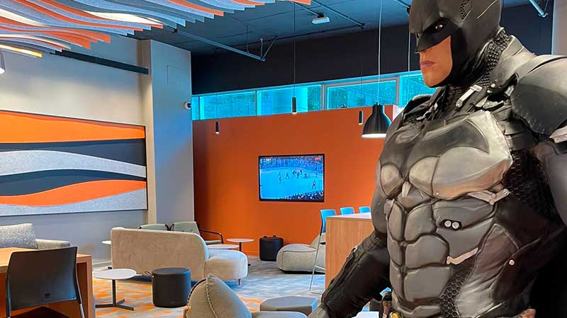 Personajes como Spiderman, Hulk y Batman crean un ambiente informal que fomenta la creatividad, la ambición y la superación para conseguir lo que uno sueña. La presencia de estas figuras genera un despliegue visual y le ponen vida y fantasía a un gran mural que caracteriza a este nuevo espacio, ideado por los arquitectos de la compañía bajo la temática de superhéroes con algunos de los personajes de Marvel y también de DC Cómics, realizado por la artista MIN 8.