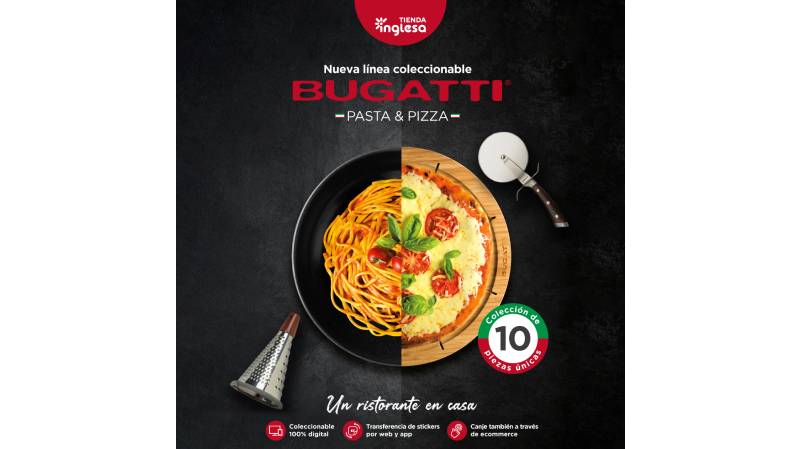La marca especializada en artículos para la cocina y el hogar, Bugatti, con más de 90 años en el mercado, vuelve a Tienda Inglesa con una línea coleccionable de Pasta & Pizza, disponible hasta agotar stock. Esta es la novena colección Bugatti que llega a la Tienda para convertir la cocina de todos los hogares en un verdadero restaurante con los clásicos de Italia. El set consta de diez piezas únicas, cinco para pasta y cinco para pizza.