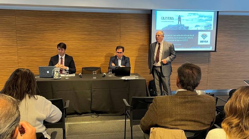 Atendiendo a la “agenda nueva” de aspectos regulatorios que impactarán en el mercado de valores uruguayo, y para contribuir a su desarrollo, la Bolsa Electrónica de Valores del Uruguay S.A. (Bevsa) organizó una conferencia que contó con la exposición de los doctores Ricardo Olivera, Federico Rocca y Juan Mailhos, del estudio Olivera Abogados.