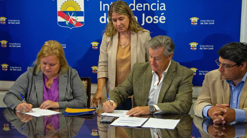 Estuvieron presentes en la firma el presidente de Antel, Gabriel Gurméndez; el vicepresidente, Pablo Lanz; y la intendenta de San José, Ana María Bentaberri.