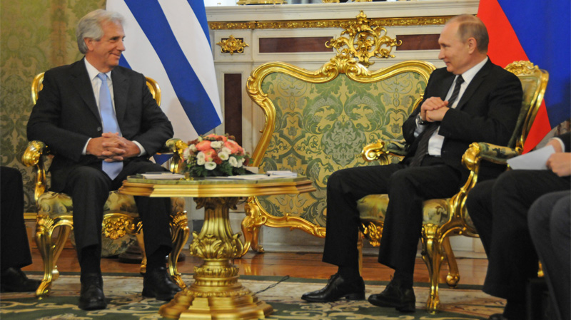 “En la reunión realizamos un repaso de la agenda bilateral en los planos político, económico, cultural y de cooperación en temas de defensa y seguridad”, indicó Vázquez en una conferencia de prensa realizada en el mismo Kremlin tras el encuentro con Putin.