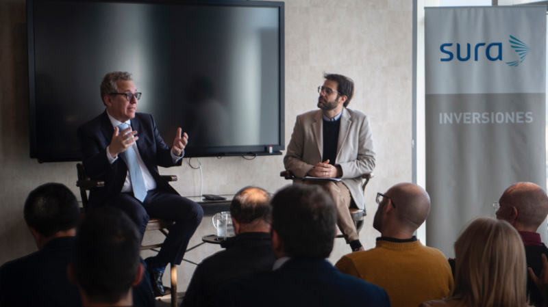 El análisis económico, guiado por el líder de Producto y Estrategias de Inversión de Inversiones SURA en Uruguay, Matías Hofman, estuvo a cargo de Axel Christensen, director de Estrategia de Inversiones para América Latina de BlackRock, una de las principales compañías de soluciones de inversiones, asesoramiento y gestión de riesgos a nivel mundial.
