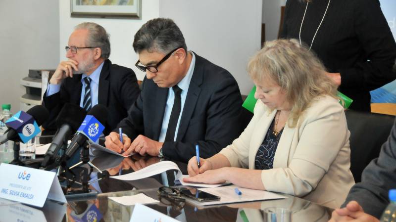 La firma del convenio tuvo lugar en el Palacio de la Luz el pasado viernes 7. Del evento participaron también el gerente general de UTE, Javier San Cristóbal; y el director del ente, Enrique Pées Boz.