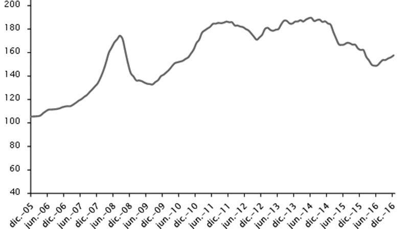 Asimismo, el IPE en dólares de Textil, Vestimenta y Cuero se mostró relativamente estable en relación a noviembre (0,2%), pero registró una baja de 4,4% en comparación a diciembre de 2015, explicado por el mal desempeño del precio del cuero.