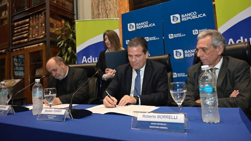 La firma del acuerdo tuvo lugar ayer jueves 17 en el Espacio Mark Dion del Hall de la Casa Central del Banco República y contó con la participación del presidente de la institución anfitriona, Salvador Ferrer; su secretario general, Roberto Borrelli; y el director nacional de Aduanas, Jaime Borgiani.