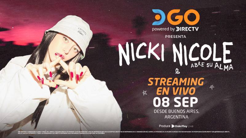 Además, tras la emisión del show en vivo, DGO pondrá a disposición el material de Nicki Nicole en formato on demand por 30 días para que los usuarios puedan verlo en cualquier momento y lugar a través de diversos dispositivos.
