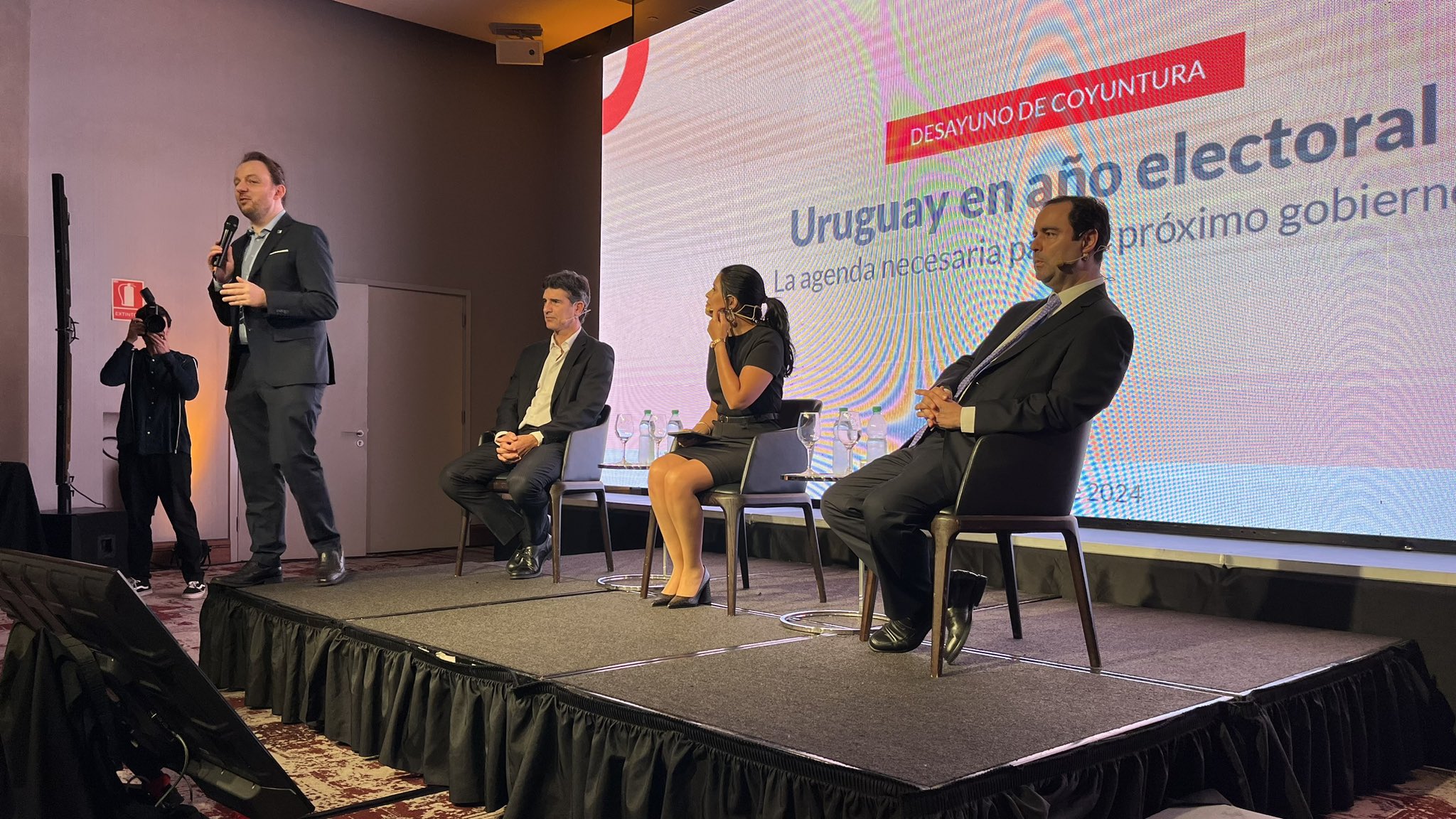 El Centro de Estudios para el Desarrollo (CED) realizó en el Hyatt Centric Montevideo su tradicional almuerzo en el que presenta un análisis de la coyuntura económica y política en el Uruguay. Esta edición, además, tiene la relevancia de celebrarse en año electoral. Durante la primera mitad de la instancia, el presidente del CED, Hernán Bonilla, presentó el panorama económico, y luego el director de Equipos Consultores, Ignacio Zuasnábar, introdujo la perspectiva política.