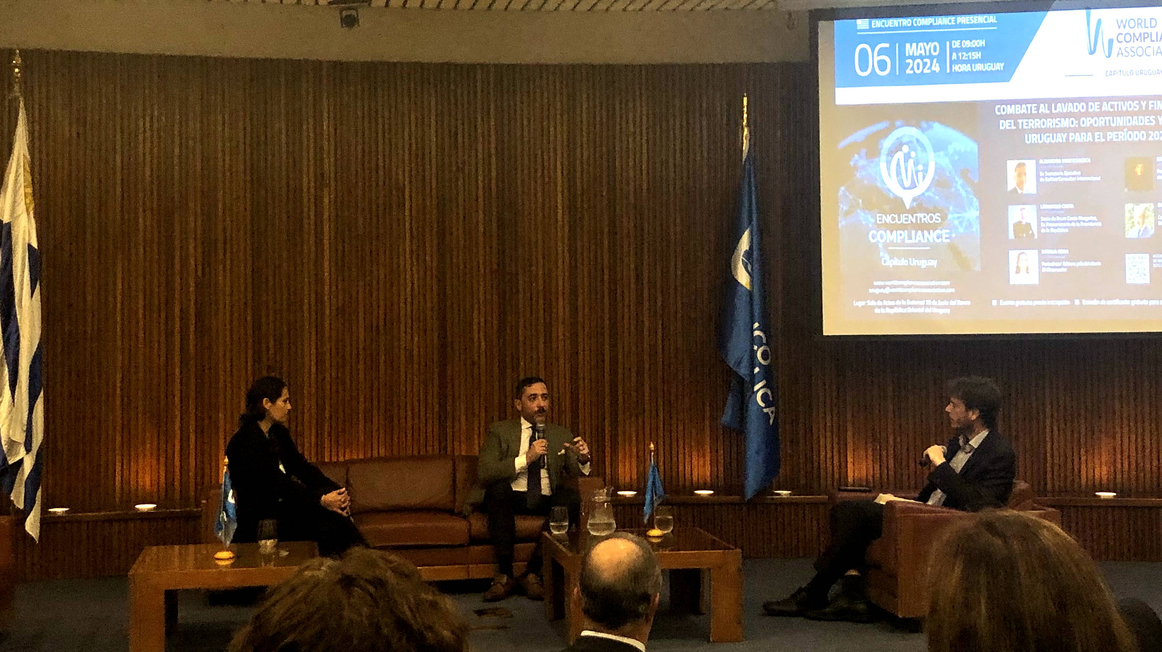 En un nuevo encuentro de la World Compliance Association realizado este lunes en la Sala de Actos del Banco República, se discutió el tema del combate al lavado de activos y financiamiento del terrorismo. Los tres ponentes especializados en la materia coincidieron en que la normativa es suficiente, pero se falla en la implementación por falta de voluntad política, y que los casos investigados de lavado de activos no se condicen con la coyuntura de seguridad pública que atraviesa el país.