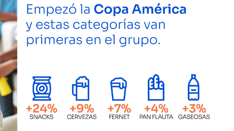 Las bebidas con o sin alcohol, snacks y pan flauta son las categorías que lideran las ventas en los distintos comercios del país durante los partidos de la Copa América, según un relevamiento que realizó Scanntech en el que analizó las compras realizadas desde el viernes 21 al domingo 23 de junio, frente a las registradas el fin de semana anterior.