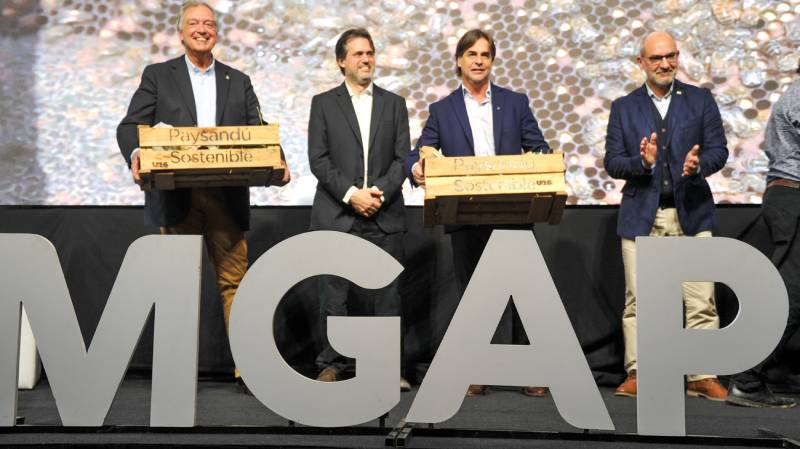 Del evento también participaron el ministro de Ganadería, Agricultura y Pesca, Fernando Mattos; el subsecretario de la cartera, Ignacio Buffa; el ministro de Ambiente, Robert Bouvier; el presidente del Banco República, Salvador Ferrer; la presidenta de UTE, Silvia Emaldi; y el director general de la Granja, Nicolás Chiesa, entre otras autoridades.