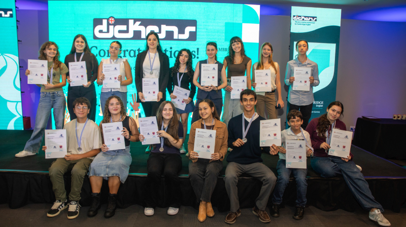 Se trató de una instancia donde se reconoció a los alumnos destacados que rindieron el examen internacional de inglés a través de Dickens, en la que fueron premiados 98 alumnos, 58 pertenecientes a niveles iniciales y que rindieron exámenes diseñados para young learners y 40 reconocimientos para alumnos que rindieron exámenes desde A2 Key a C2 Proficiency.