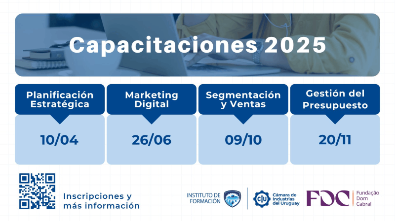 Desde el año 2023, la Cámara de Industrias del Uruguay (CIU) y la Fundación Dom Cabral (FDC), institución educativa radicada en Brasil, mantienen una alianza estratégica para capacitar al sector industrial uruguayo. En ese marco, durante el año se realizarán capacitaciones en Planificación Estratégica, Marketing Digital, Segmentación de Ventas y Gestión de Presupuesto. La participación es abierta y sin costo para directores y mandos medios de empresas del sector.
