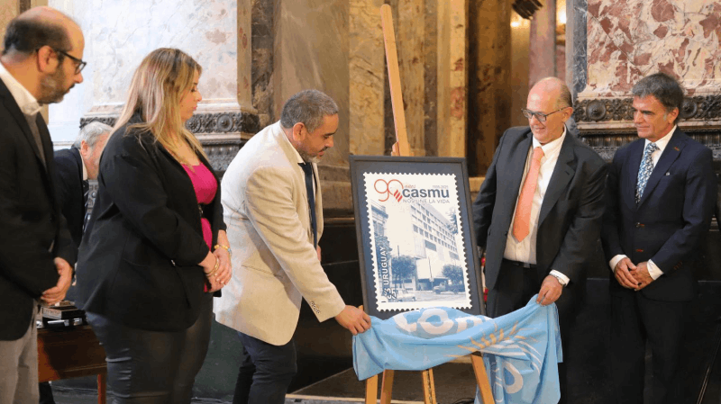 Uno de los momentos más simbólicos fue el lanzamiento del sello conmemorativo de CASMU, emitido por el Correo Uruguayo. En el acto protocolar —que incluyó el matasellado del sobre “Primer Día de Emisión”— participaron su presidente, Sr. Gabriel Bonfrisco, y el vicepresidente, Arq. José Luis Pereyra. Esta emisión reconoce la trayectoria de CASMU como una institución pionera en salud en Uruguay.