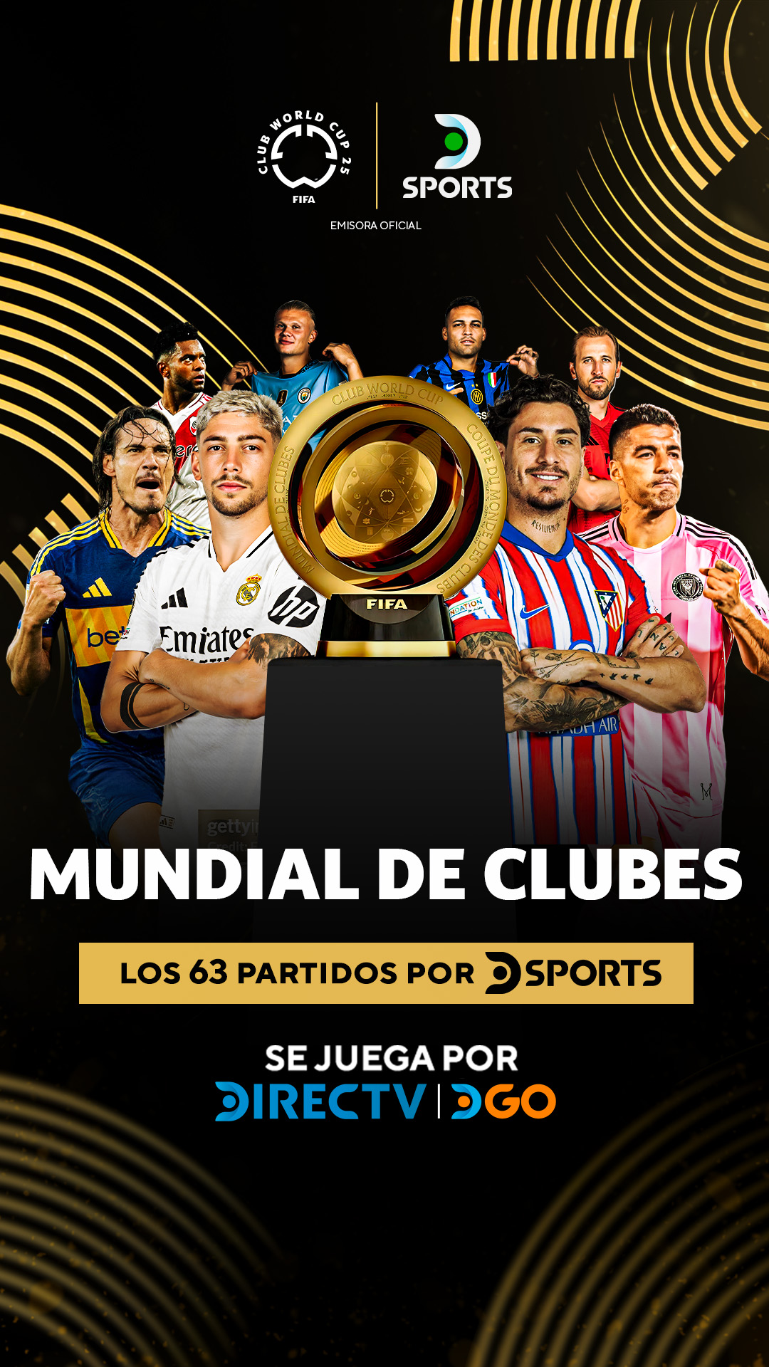 DSports (310) y DSports 2 (312) transmitirán todos los partidos para Argentina, Chile, Colombia, Ecuador, Perú y Uruguay. La señal deportiva, además, emitirá más de 350 horas de su programación habitual con un especial seguimiento a River, Boca y a los futbolistas uruguayos que participarán de la competencia: Edinson Cavani (Boca), José María Giménez (Atlético de Madrid), Luis Suárez (Inter Miami) y Federico Valverde (Real Madrid), entre otros.