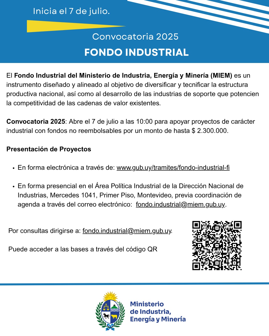 Por consultas dirigirse a: fondo.industrial@miem.gub.uy.