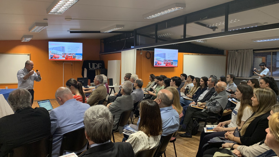 En primer lugar, repasó la historia de la empresa a nivel internacional, afirmando que se trata de una “empresa familiar” y que en la actualidad cuenta con presencia en más de 35 países en los cinco continentes. Luego comenzó a repasar la historia de la firma en Uruguay, que inicia con su participación en 1996 en Zonamerica, luego en Costa Oriental, el Polo Oeste y finalmente desde 2001 a través de la Terminal Cuenca del Plata (TCP), donde tiene una participación del 80%. Respecto a TCP, destacó que actualmente tiene la capacidad de mover más de un millón de Teus por año y genera más de 600 puestos de trabajo directos y unos 2.500 indirectos, contando además con 150 empresas proveedoras.