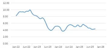 La Encuesta de Expectativas de Inflación del BCU de noviembre indicó que la mediana de los analistas proyecta un cierre del año en torno al 4% y 4.65% el próximo. Estas proyecciones sugieren que la inflación se mantendrá dentro del rango objetivo durante todo el 2025 y 2026.