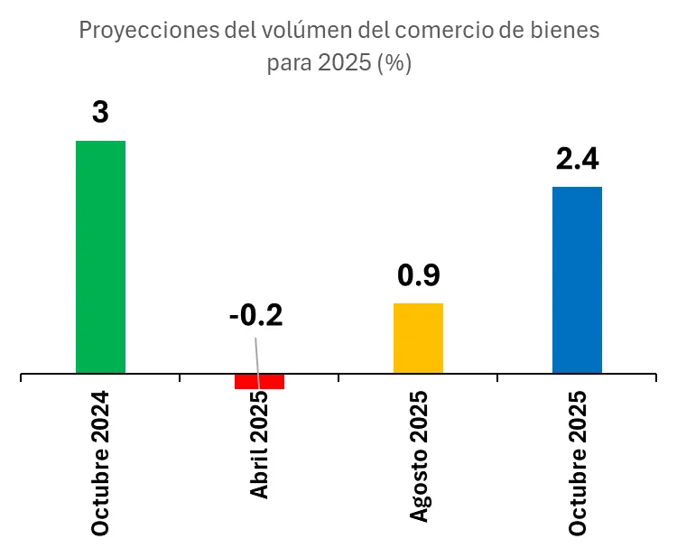 Si bien las proyecciones de crecimiento del comercio para el año 2025 fueron ajustadas a la suba en cada informe periódico, sucesivamente dichos reportes han ido revisando a la baja el crecimiento del comercio para 2026.