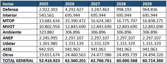 Fuente: Ley de Presupuesto Nacional. *En miles de pesos uruguayos a valores del 1⁰ de enero de 2025.